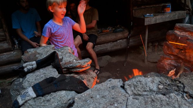 There were a few NOBO thru hikers at the shelter where we stopped for the nite and Rocket loved talking with them about the trail and making sure the fire had plenty of fuel.