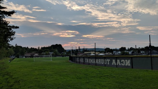 Our plan was to walk 1.5 out of town to the next shelter, but we were a little behind schedule and it was getting dark, so instead we decided to camp in the woods behind the Dartmouth athletic fields. Apparently campus security looks the other way on this and it seems pretty popular as there are many others here as well.