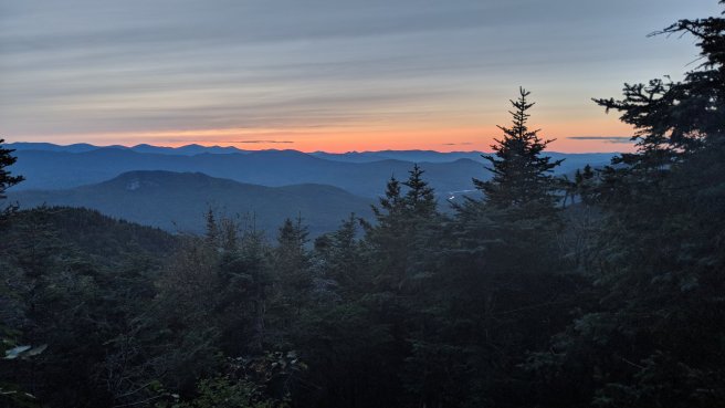 We arrived at the shelter just as the sun was setting and we ended up talking with other hikers for quite a while after dark. Most of the hikers we know are northbound and as we are exiting the Whites they are starting to feel that the end of their hike is near. This realization is prompting a lot of introspection and leads to some meaningful conversations.