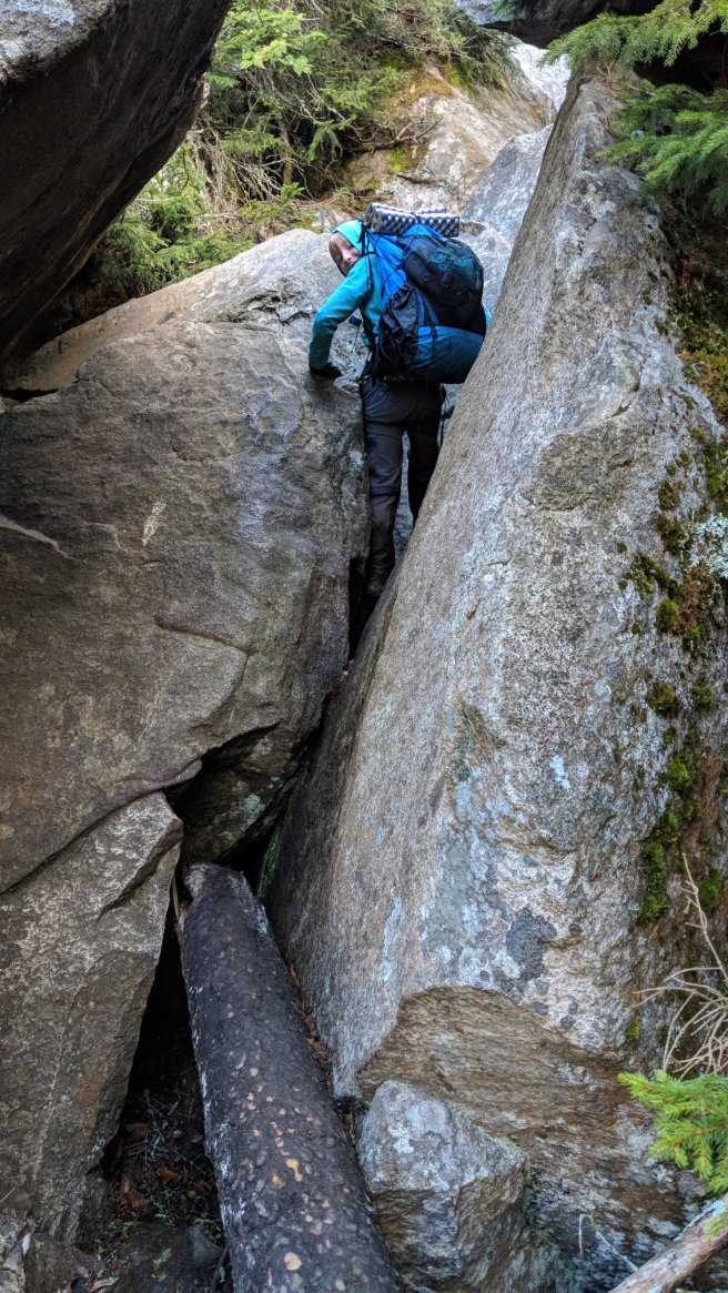 We had perhaps the most difficult (and fun) mile of the trail to start the day. The Mahoosuc Notch is not really a trail. It is more of a giant boulder heap lodged between two cliffs. It requires significant climbing over, and sometimes under the boulders. The slow pace through this area meant that we would be covering less ground today, but we took our time and enjoyed the experience.