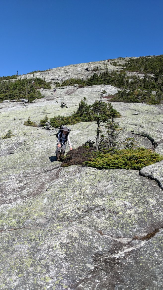 As we get farther from New Hampshire, we are starting to encounter sections of the trail that are actual trail. We haven’t seen much of this in several weeks as we have been on relatively rough terrain. With this comes the ability to move faster and cover more ground each day. The trade-off is that we have longer sections back in the green tunnel. Today, though, was an extended walk on exposed rock over several peaks with amazing views in all directions. There were blueberries everywhere and Rocket ate handfuls as we climbed.