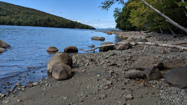 After returning to the trail we took our time repacking and eating breakfast. After about a mile we stopped by a pond with a big sandy beach where Rocket could explore while I spent a few hours planning for the upcoming sections. With just a few days to Monson, it is time to start thinking about logistics for Katahdin!