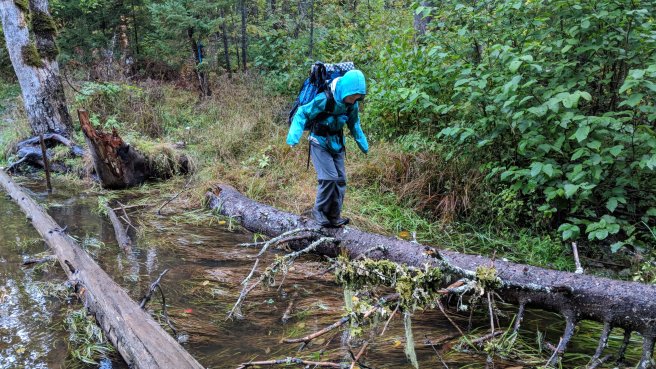 We woke up before dawn and were on the trail at first light. The trail was fairly easy, but did involve two rivers the needed to be forded. The fords were not difficult, but the water was cold. We even got trail magic on the way! A couple who hiked the trail a few years ago were out cooking hotdogs for hikers. While we were stopped there we chatted with a woman who has been section hiking the trail for 25 years and is now 75. She has only the 100 mile wilderness left to complete the trail!