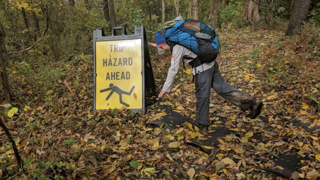 One note from earlier today. Someone had run a cable along the ground near one of the farms that we passed and positioned a trip hazzard warning sign along the trail. We laughed because for the last 200 miles the entire trail has basically been a trip hazzard.