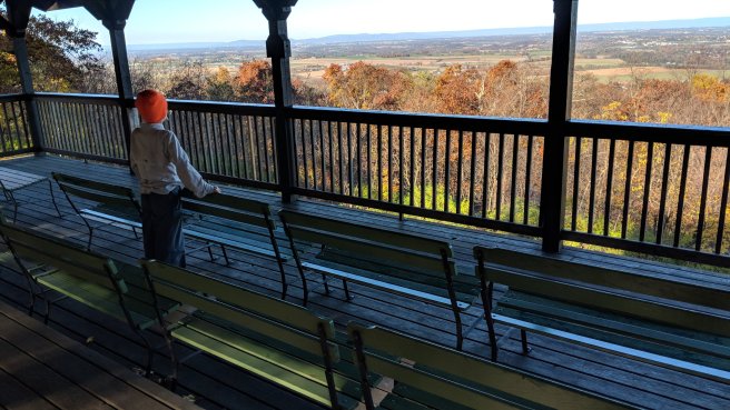 Once in Maryland, the trail enters a beautiful park where there are benches lined up in a covered pavilion just for the purpose of watching the countryside below.