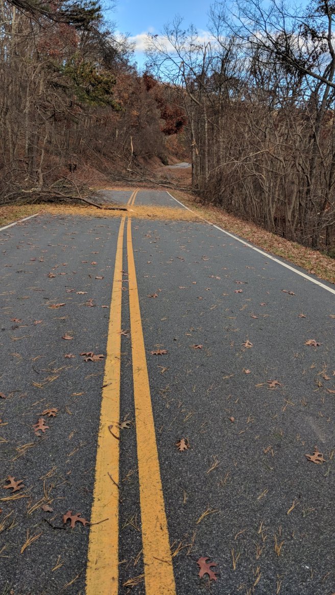 Again today the trail conditions are terrible and continue to get worse. We were unsure how long it would take to get through it, so we started out well before dawn. It was a good thing we did as we arrived at the southern park entrance with only 15 minutes to spare after rushing all morning. McCormick Gap was particularly bad. It felt like walking through the aftermath of an explosion. You might be able to see in the image below that almost every visible tree has white scars where linbs have broken off.