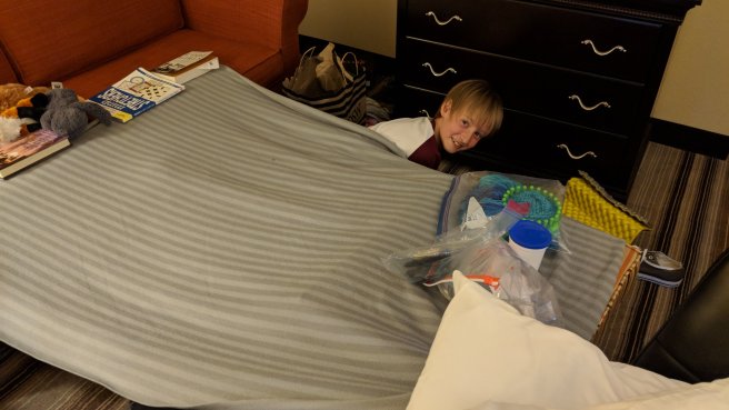 1. A game for the kids (and kids at heart) reading along. How many different activities can you spot in this picture? We used everything we had to build the fort.