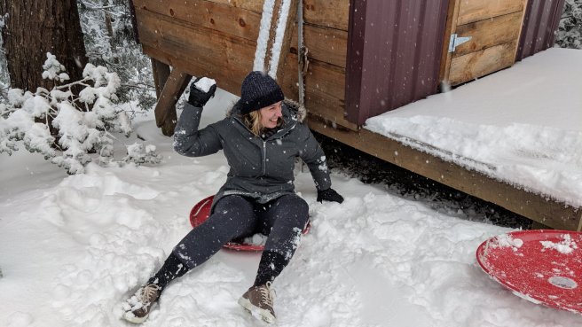 It snowed quite a bit overnight and should continue all day making travel very difficult. We are so glad that Brenda was able to get here in time! We all decided not to try to hike today so we enjoyed a really fun snow day at the hostel.