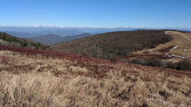 We were fortunate to have a bright, clear day to experience Big Bald and Little Bald. From the top of Big Bald there is an amazing 360° view that seems to go on forever. It was cold and windy, but with most of the snow now melted, we could hike at our normal pace and really enjoy the beautiful day.