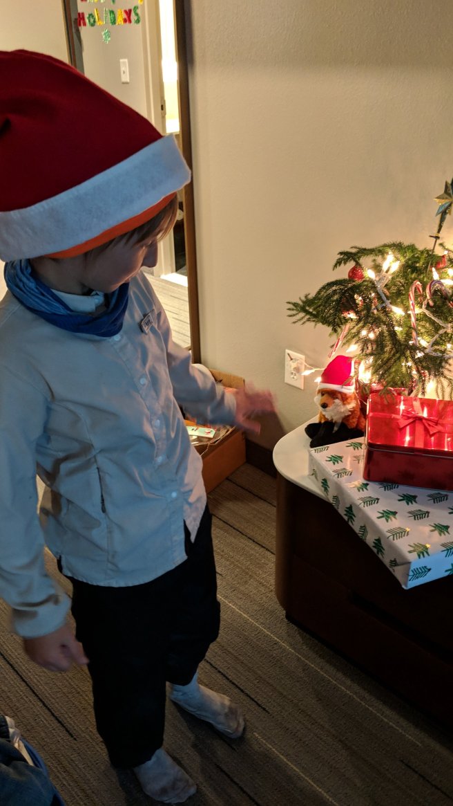 We planned a short hike in the morning to get to a road crossing where Brenda picked us, Ox, and Torch up and drove us back up to Gatlinburg. Once there, Rocket got to work decorating the hotel room just as she had planned. Then we spent the evening taking in Gatlinburg. It definitely feels like Christmas now!