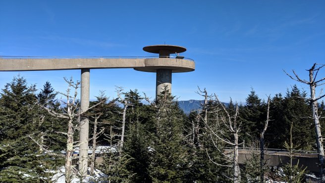 With Christmas behind us and Newfound Gap open, it was finally time to tackle the Smokies. Today had the best weather for the next several days so we decided to start with the section that includes Clingmans Dome, even though it means we will complete the trail through the park a bit out-of-order. This is the highest point on the AT and one of the challenges we’ve been looking forward to since the beginning. I’ve done this hike several times in the past and was excited to share this time with Rocket.