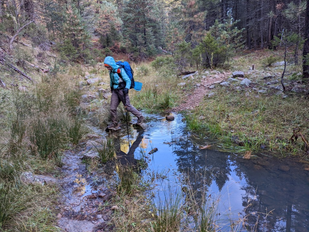The sun came back today. That, plus washer everywhere and fall colors make the trail feel much more familiar. All of this combined with more interesting trails provide a very pleasant hiking day.