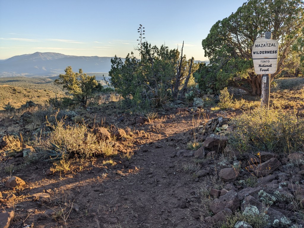 As we walked away from Pine in the afternoon we could already see the transition. We are leaving the Colorado Plateau, in which we’ve been hiking from the start. As we drop down across Mongollon Ridge the landscape changes from high desert / Rocky Mountain climate to the warmer and drier desert of the American southwest.