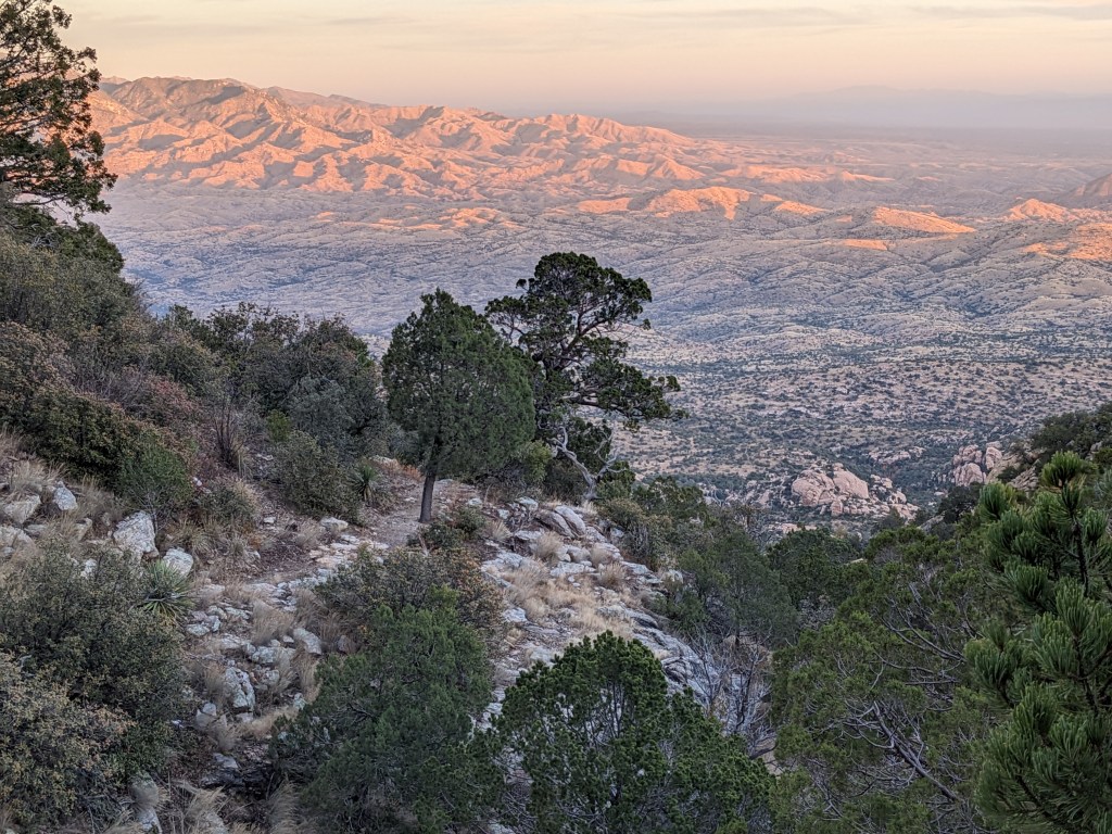 Next up on the sky island parade is Mt. Mica, inside Saguaro National Park. Camping is restricted inside the park to established campgrounds. Because neither of the options align with the number of miles we were walking yesterday we just camped right before the boundary in the national forest. Today we enter the park and go all of the way through.