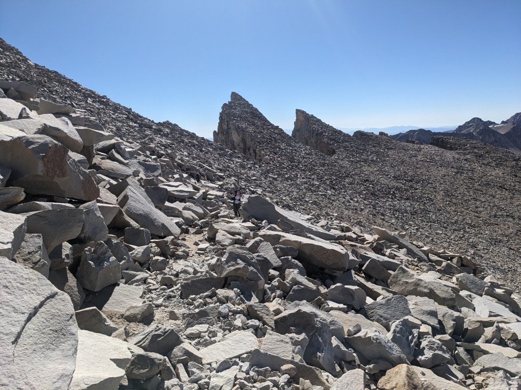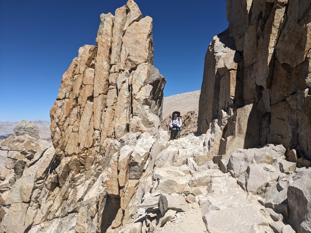 While hiking down we could finally appreciate the rock formations we had slogged past on our way up. Various impressive pillars and archways framed the trail at its highest points. Overall it was a bit odd to repeat a section of trail (up and down Whitney), but it felt nice to be officially making progress on day 3 of hiking.