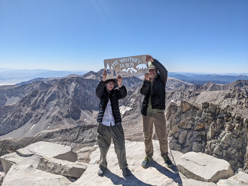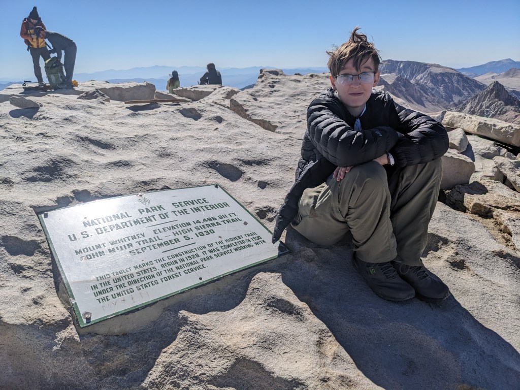 Whitney peak was amazing. Seeing as it’s literally the tallest thing around, there was very little to limit the view in any direction. The mountain was topped with a small storm shelter and a litter of plaques. The air was remarkably thin, to the point where everybody on the peak would repeatedly burst into fits of coughing.