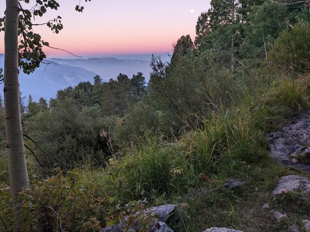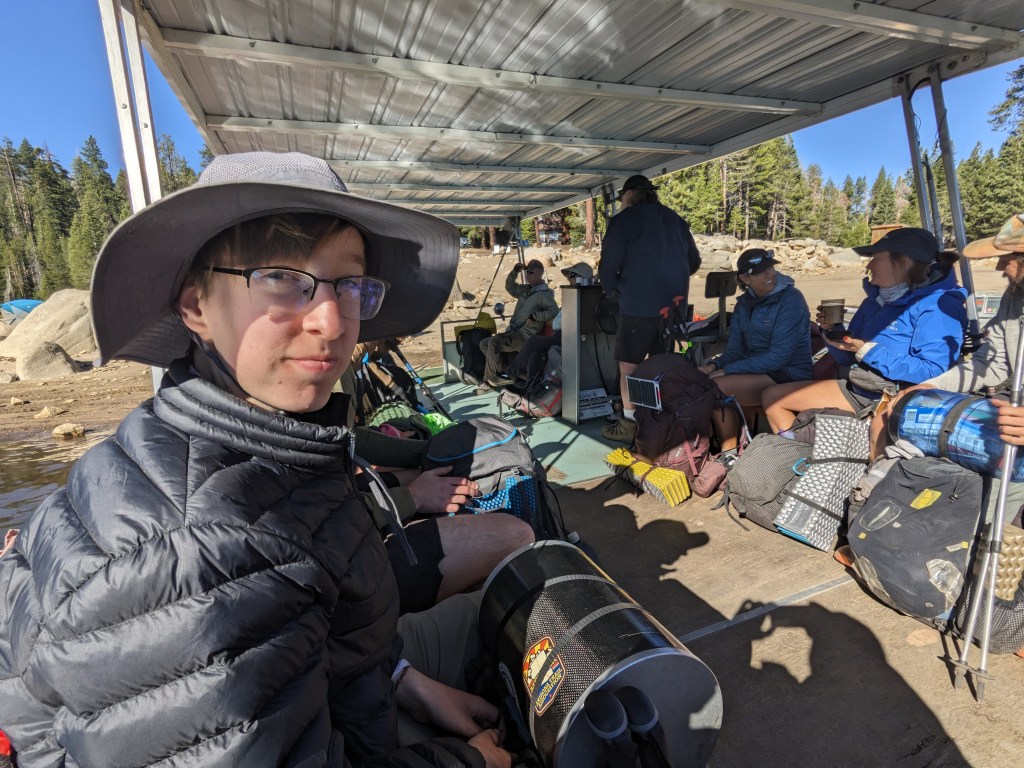 Despite resupplying at Muir Trail Ranch, we decided to stop at VVR just for laundry and showers. We woke up at around 3 in the morning, and hiked ten miles to a junction. The full moon and the sun were both rising as we hiked. From the junction it was 1.5 miles off trail to a large lake, where we waited to be picked up by the ferry.