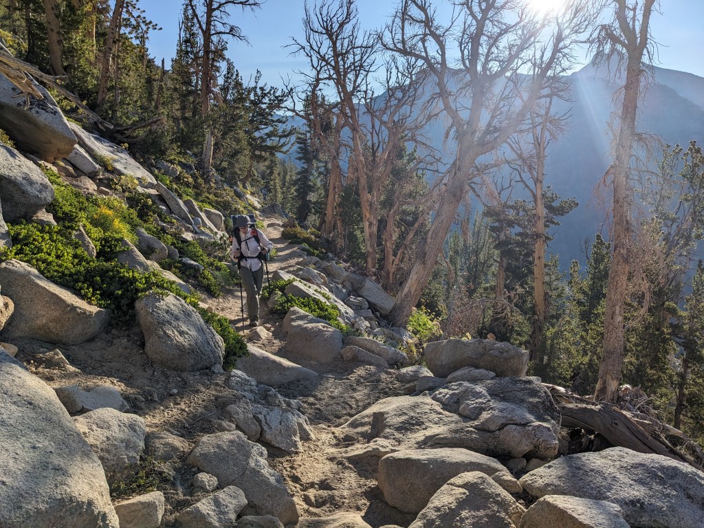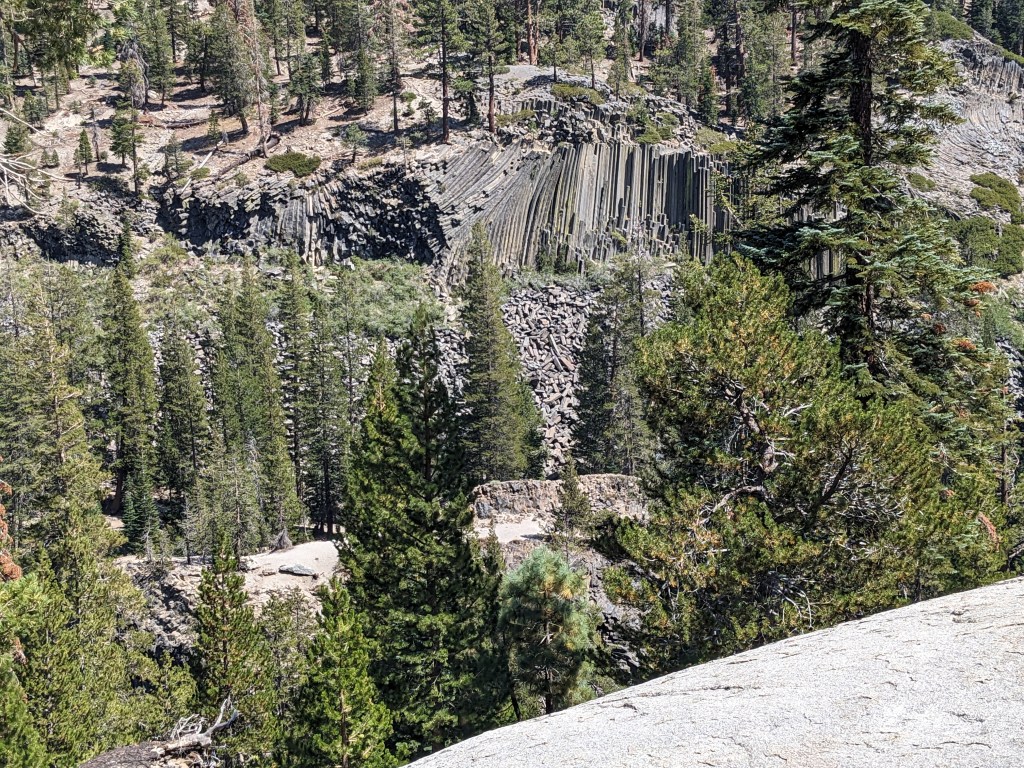 The trail takes a break from its normal pattern today with a very long stretch between named passes. Instead of a high pass, today the highlight was Devil’s Postpile National Monument. This monument is set to protect a really unique rock formation here in the Sierra National Forest. We didn’t stop in at the visitor center, but we had a great view of it from the trail. It was pretty wild to see.