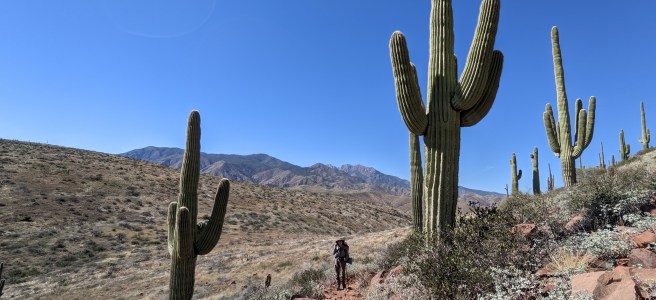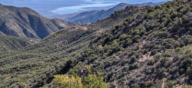 Mile 404 Stealth To Mile 425 - Stealth Entering Four Peaks We're transitioning from the rugged and difficult Mazatzals to the much calmer Four Peaks area. This has us looking forward to some smoother trails and hopefully more peaceful hiking. Peaceful hiking The trail passes near Roosevelt Lake soon and we can start to see … Continue reading Day 23. Four Peaks