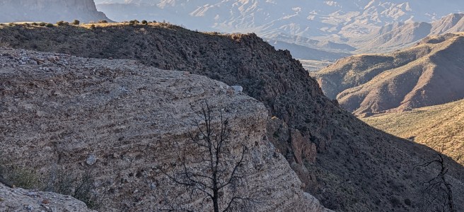 Mile 445 - Roosevelt Lake Marina To Mile 461 - Stealth We camped last night near the marina so that we could stop in this morning at the Forrest Service visitor center nearby where we used an outlet to charge some batteries and a water fountain to refill our bottles. Time to check out a … Continue reading Day 25. Entering the Superstitions